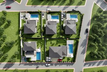 Günkon İnşaat için İzmir Çeşme/Dalyan’da 1580 m2 inşaat alanına sahip, 5 adet villadan oluşan site için mimari tasarım, uygulama çizimleri, detay çizimleri ve 3d sunum çalışmaları hazırlanmıştır, Aralık-2021.